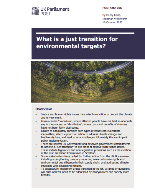This report considers transitions to meet environmental targets and how their costs and benefits for different members of society can be distributed fairly.
