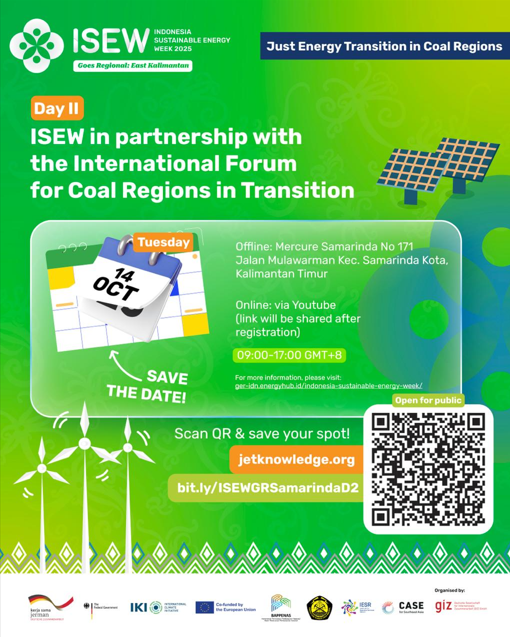The International Forum for Coal Regions in Transition will take place on 14 October 2025 in Samarinda, Indonesia, and online, under the banner of Indonesia Sustainable Energy Week Goes Regional (ISEWGR).