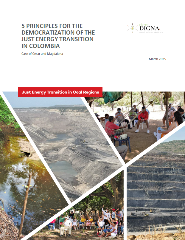 The report assesses the scope, limitations, and obstacles of emerging energy transition policies in mining areas, focusing on Cesar and Magdalena. It finds that Colombia’s public policy framework does not yet incorporate a differential approach for mining territories—particularly regarding mine closure and decarbonisation—creating a critical regulatory gap that slows progress and fuels conflict.