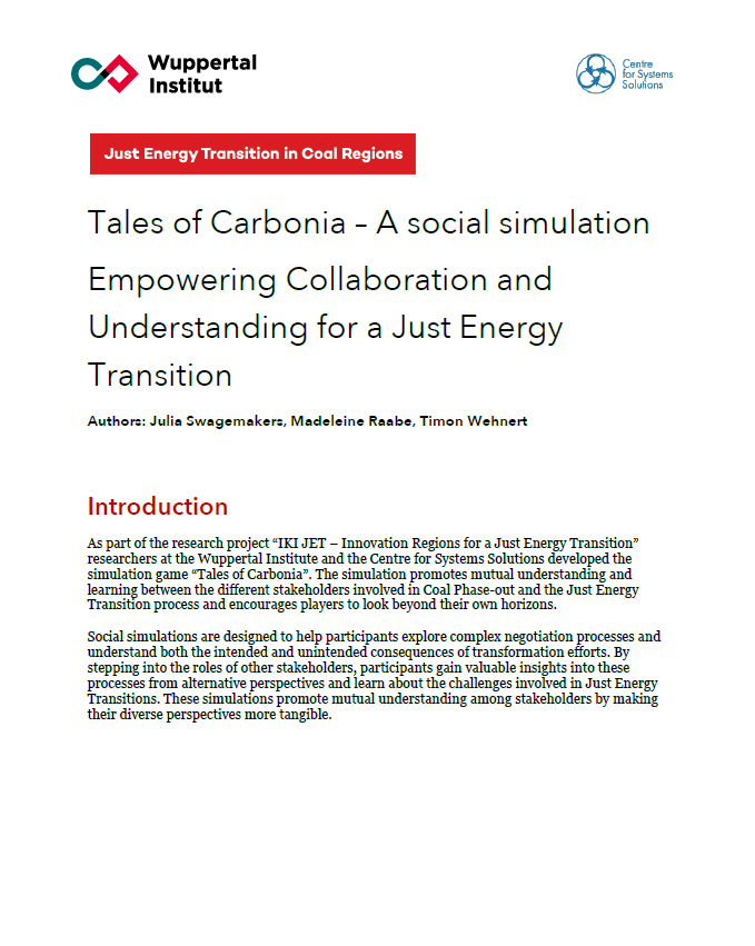 A new role-play game, developed by researchers at the Wuppertal Institute and the Centre for Systems Solutions as part of the Innovation Regions for a Just Energy Transition (IKI JET) project, aims to support effective negotiations between just transition stakeholders in coal regions around the world.